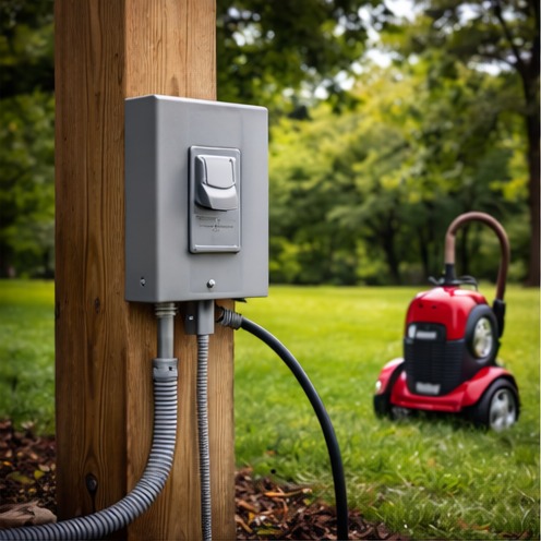 - Outdoor outlets for pressure washers, mowers, and tools